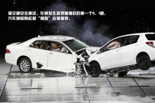 據(jù)交通安全測試,車輛發(fā)生激烈碰撞后的第一個0.1秒,汽車前保險杠和“前臉”會被撞毀。