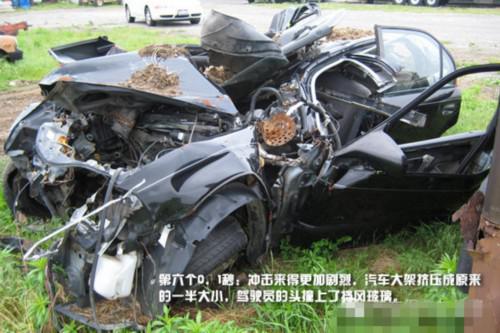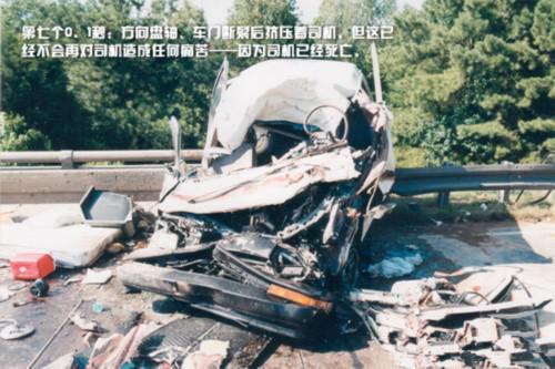 方向盤軸、車門斷裂后擠壓著司機,但這已經(jīng)不會再對司機造成任何痛苦——因為司機已經(jīng)死亡。
